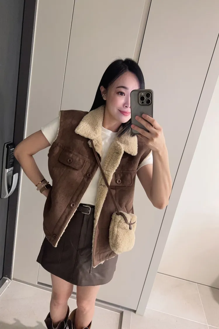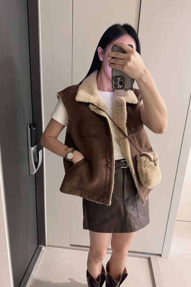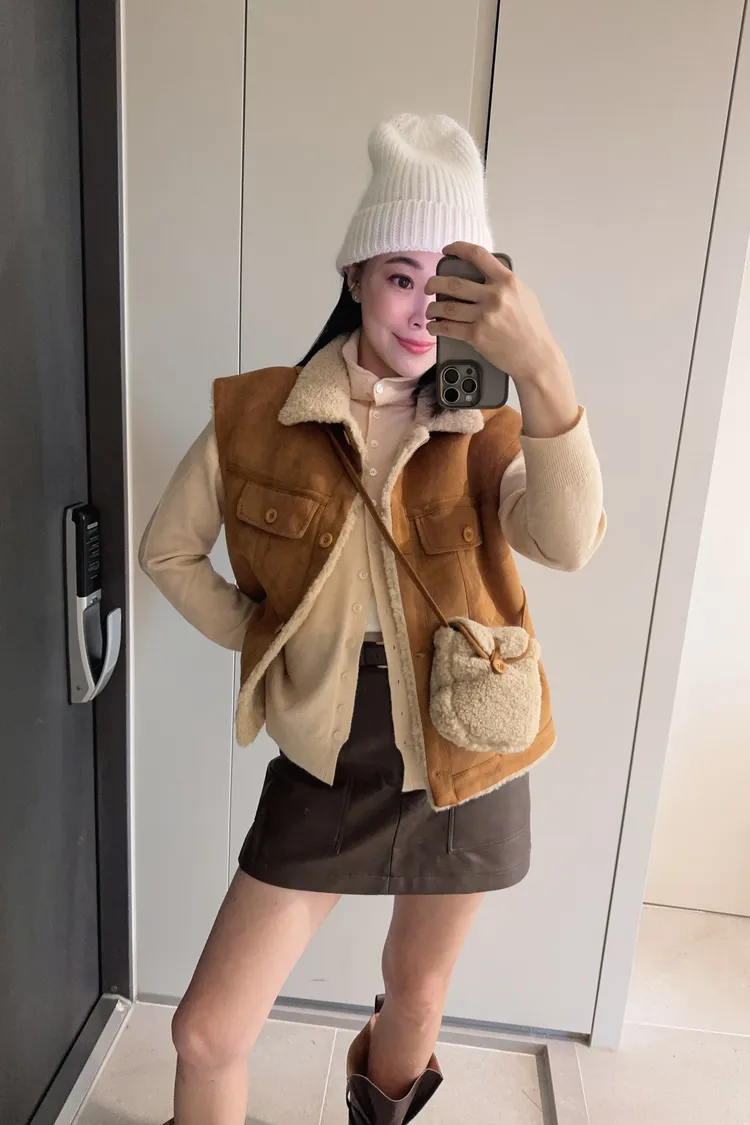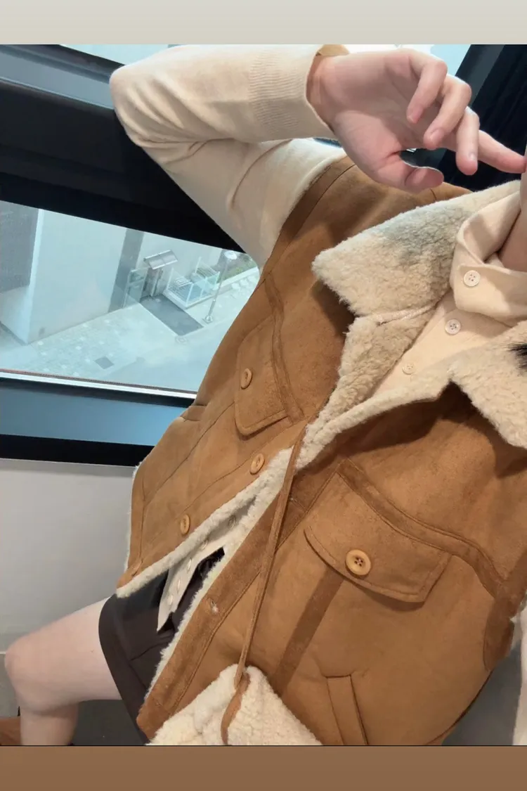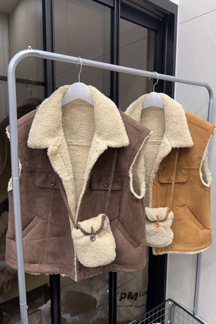 材質好到爆麂皮羊羔毛背心《附包包》