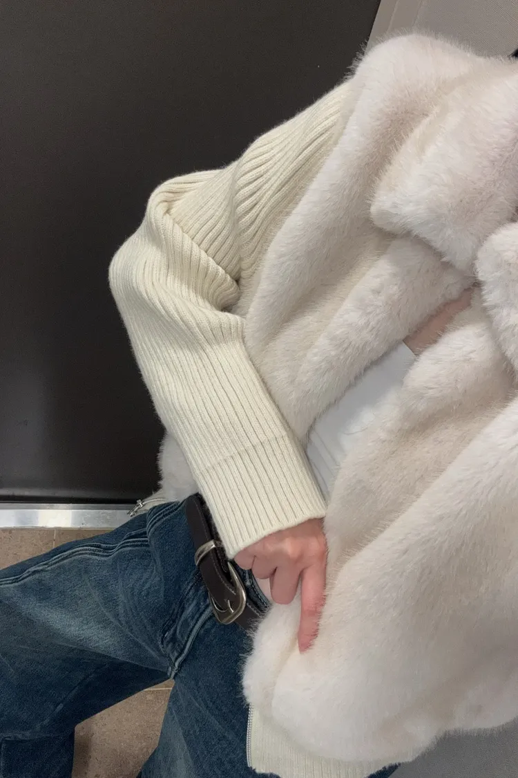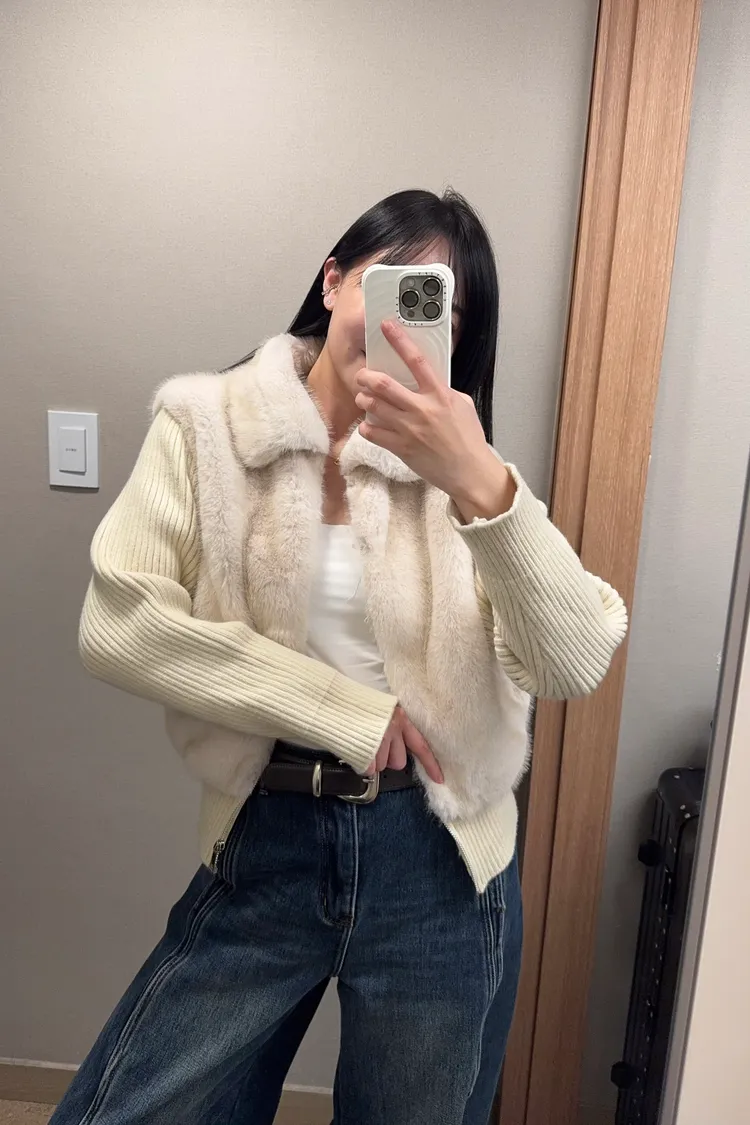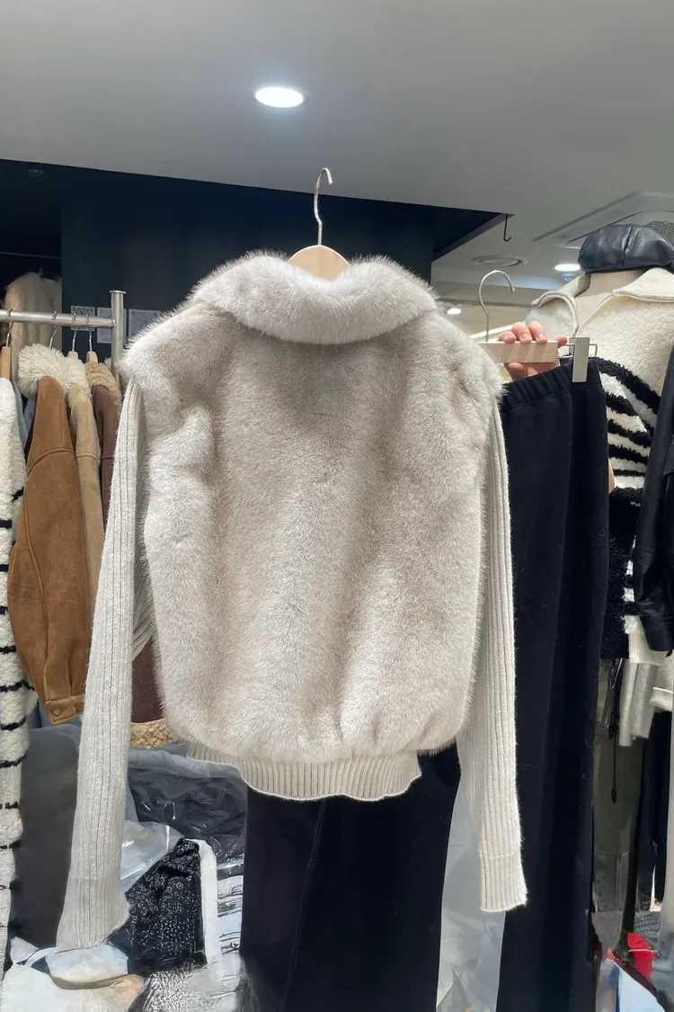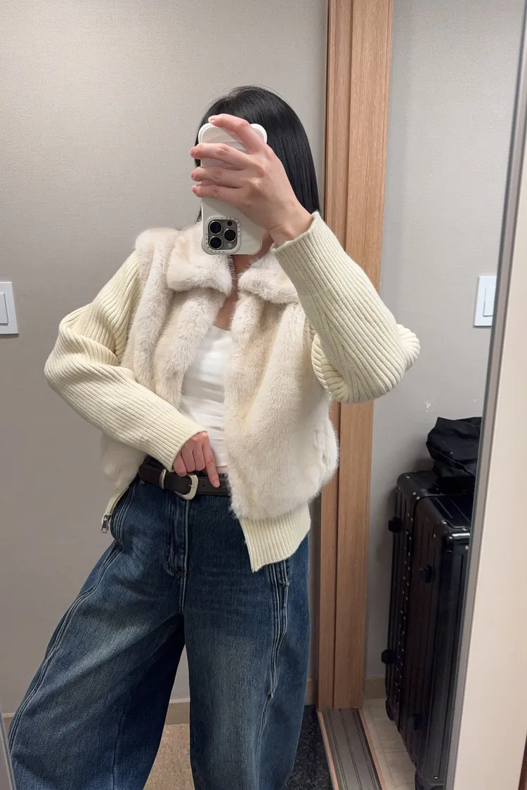 好保暖毛毛拼袖針織外套