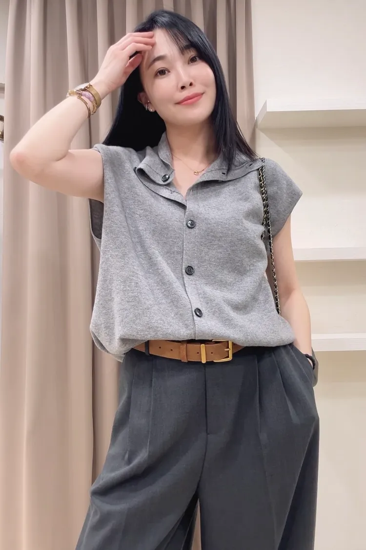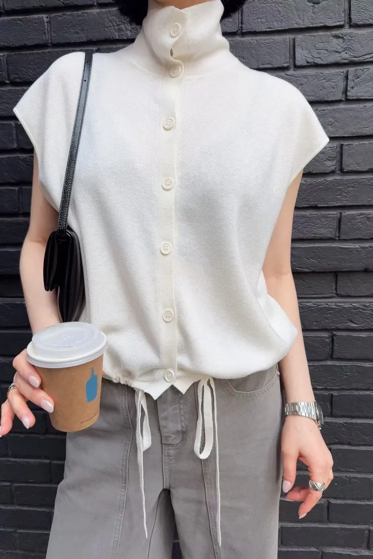 春裝 排釦高領針織上衣