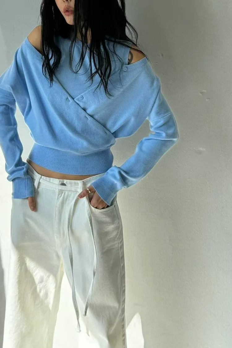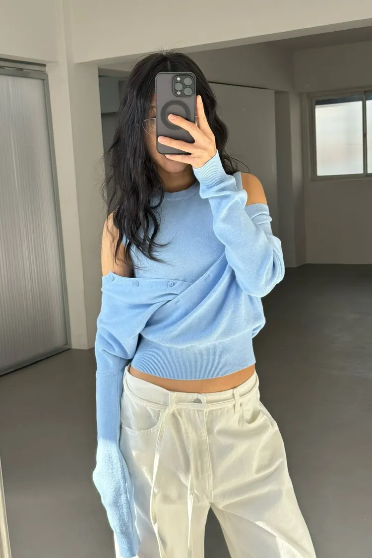 露肩兩件式針織