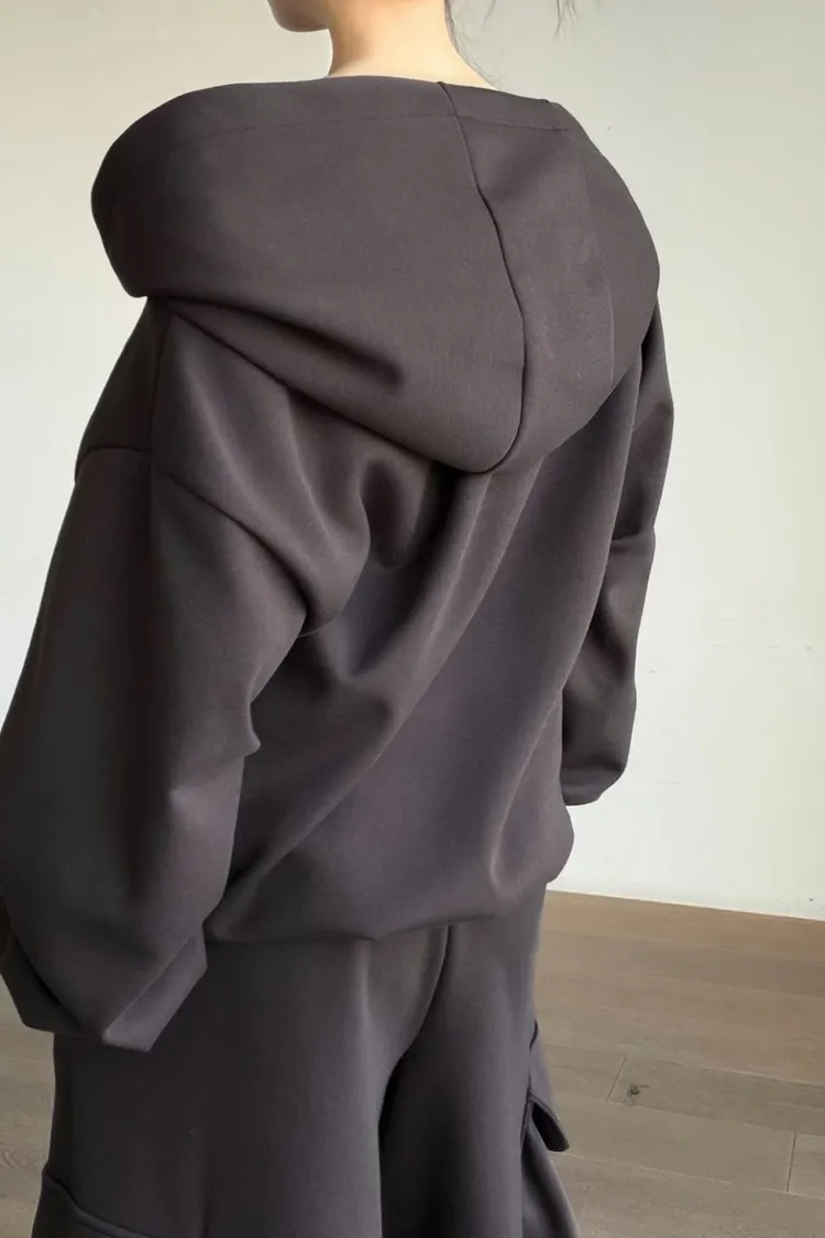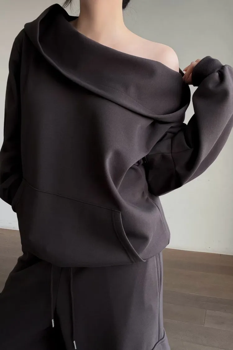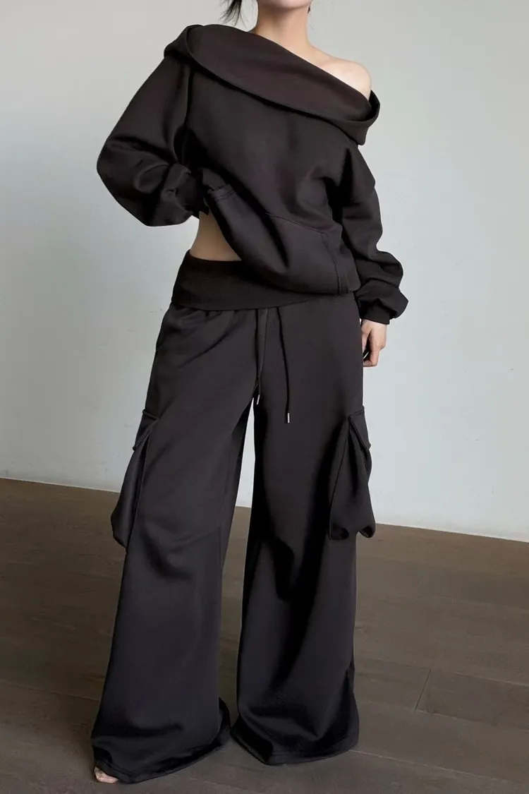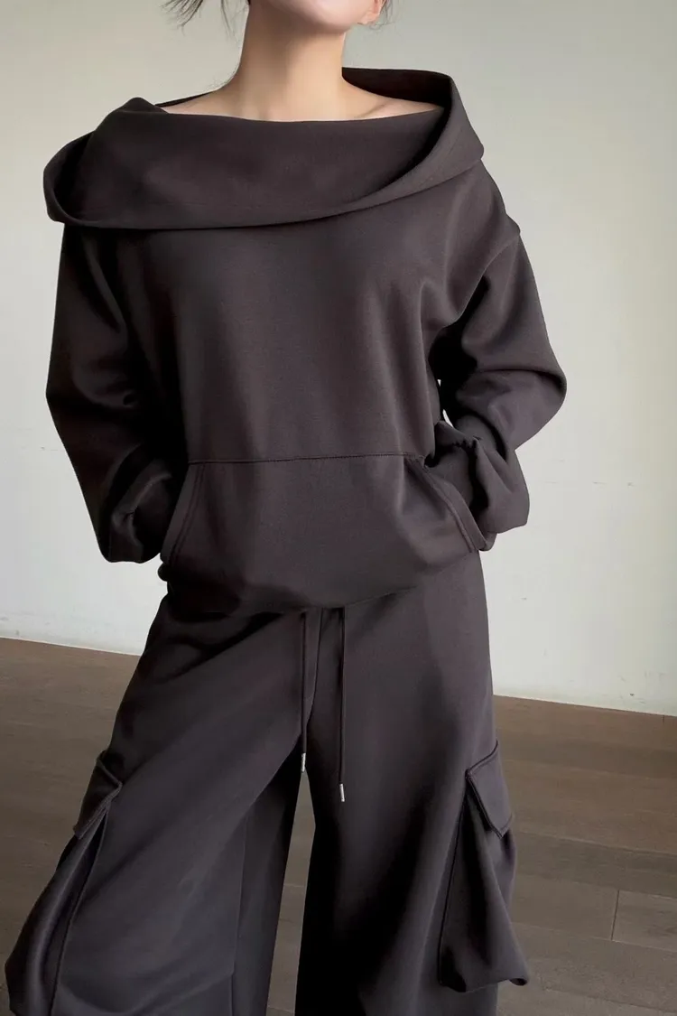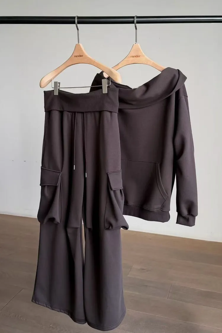 平口連帽衛衣+口袋寬褲