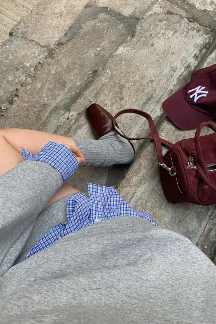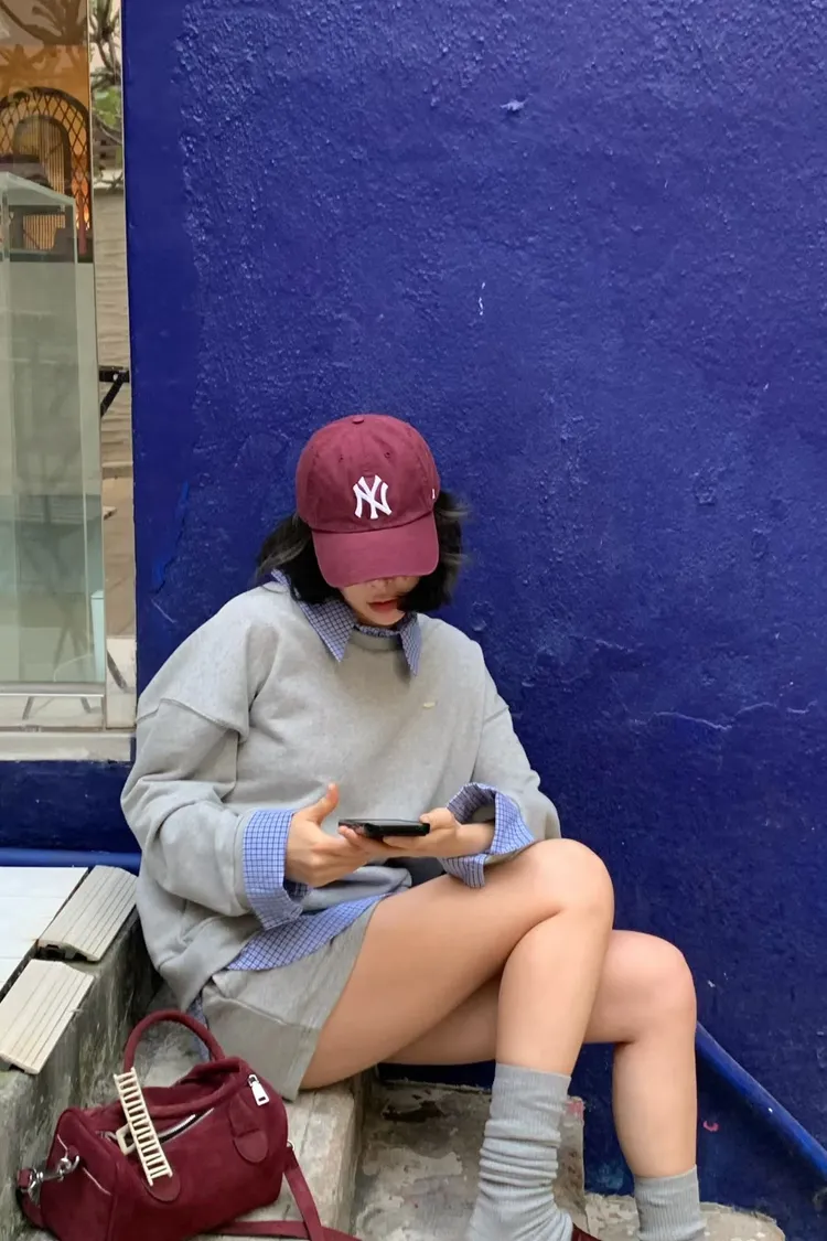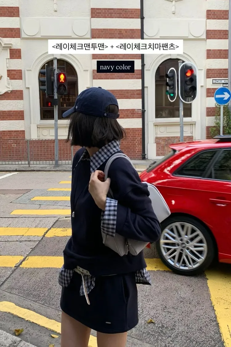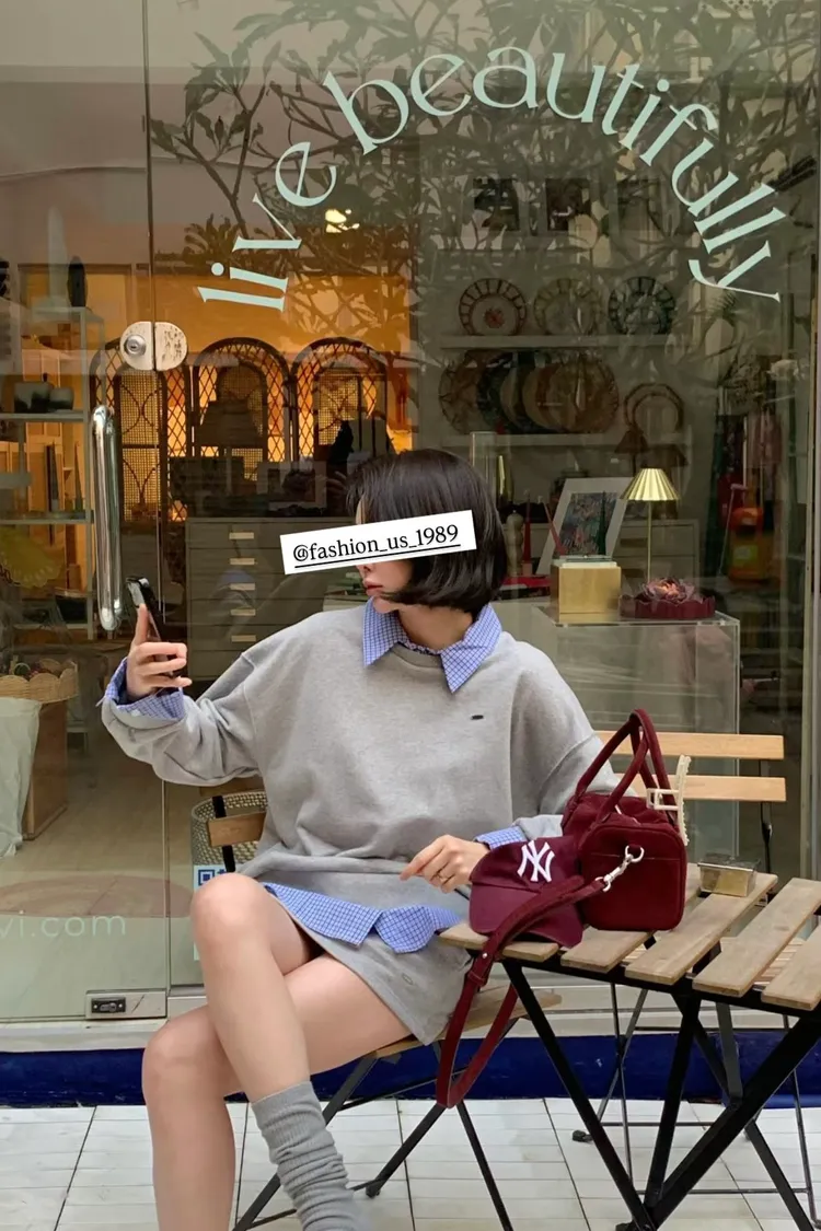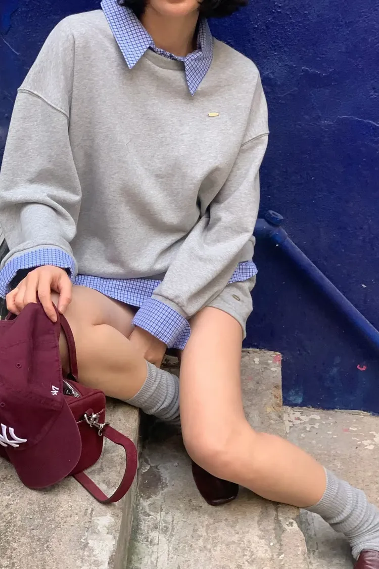 假兩件式格子衛衣套裝裙