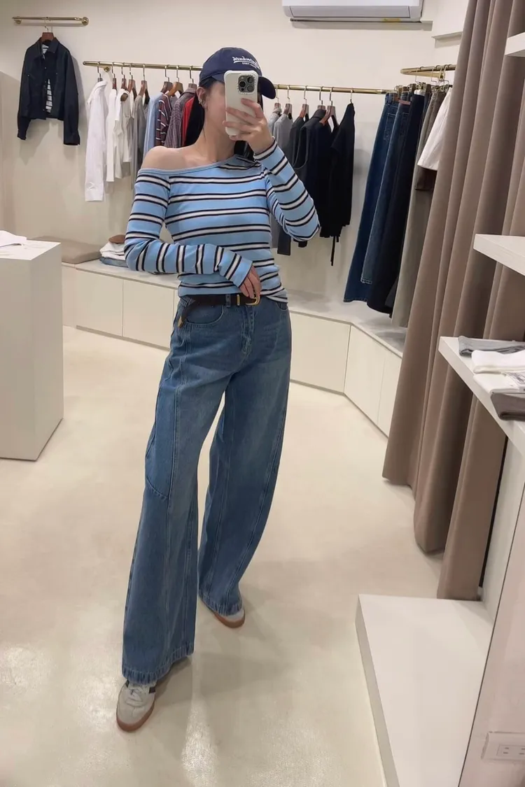薄款牛仔寬褲